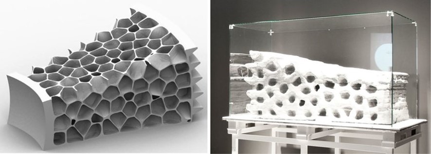 Materials for 3D printing: In 2014, the European Space Agency made a structure with lunar simulant DNA 1 with 3D printing technology. This material was 3D printed in layers that were compressed, achieving compression strength of 20,35 MPa and flexural strength of 7,11 MPa.