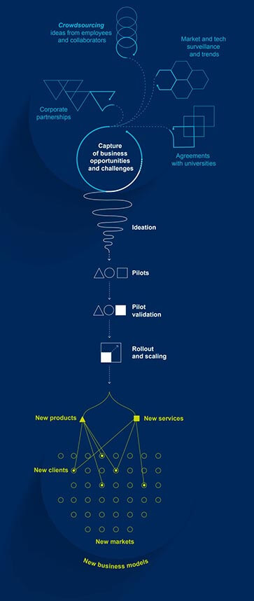 Innovation has always played a pivotal role in our business strategy. Our model has allowed us to work more efficiently, boost revenues, and develop new opportunities. This model is based on: